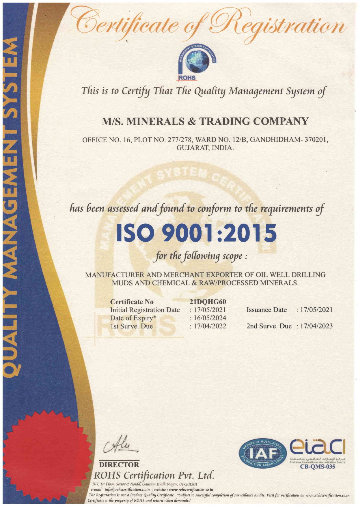 MITCO is a registered trading house in India and confirm with the rules and regulation as laid down by the Government of India. The company was established in the year 1996. The annual turnover of exports is more than sufficient as per requirement. Company deals in export of Oil well drilling, mud chemical and Industrial minerals with performance to quality/quantity and packaging control.